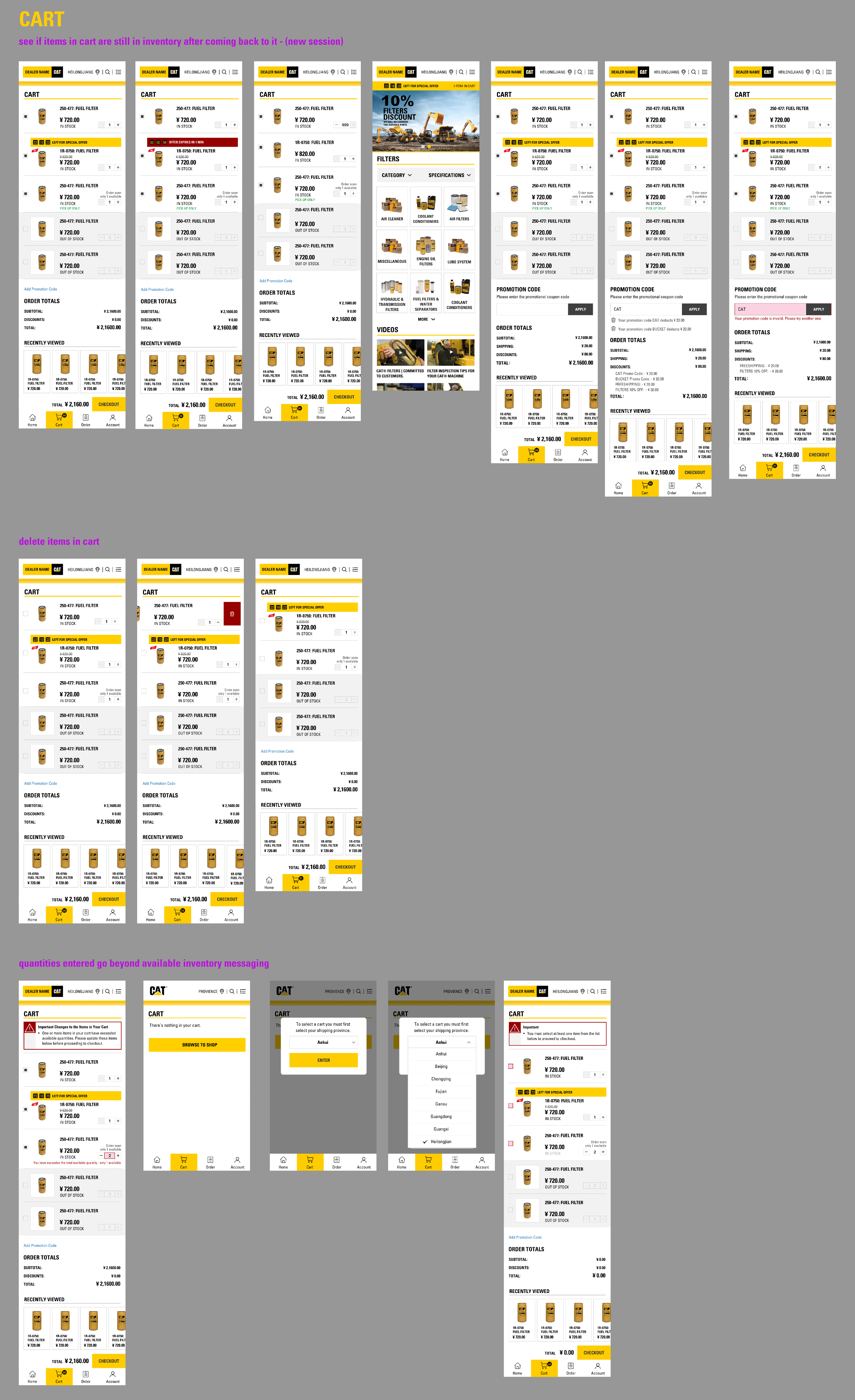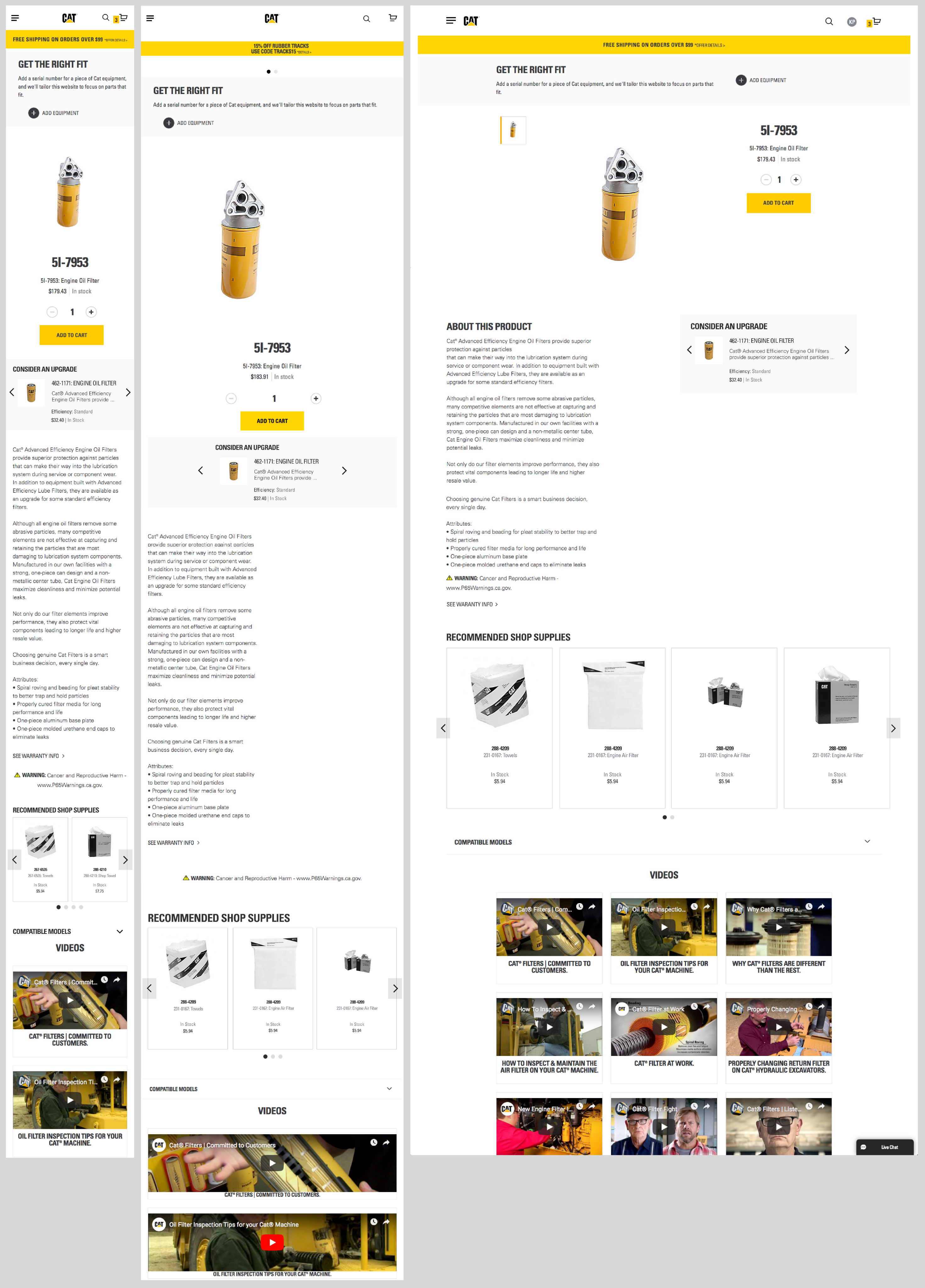 Some of what I worked on: new product detail page, a new check out UI and flow, machine / product equipment fitment information and ground engaging tools / motorgrader tools wizard. I also had an opportunity to work on an e-commerce site for a Chinese only audience which was a Chinese first UI/UX experience.