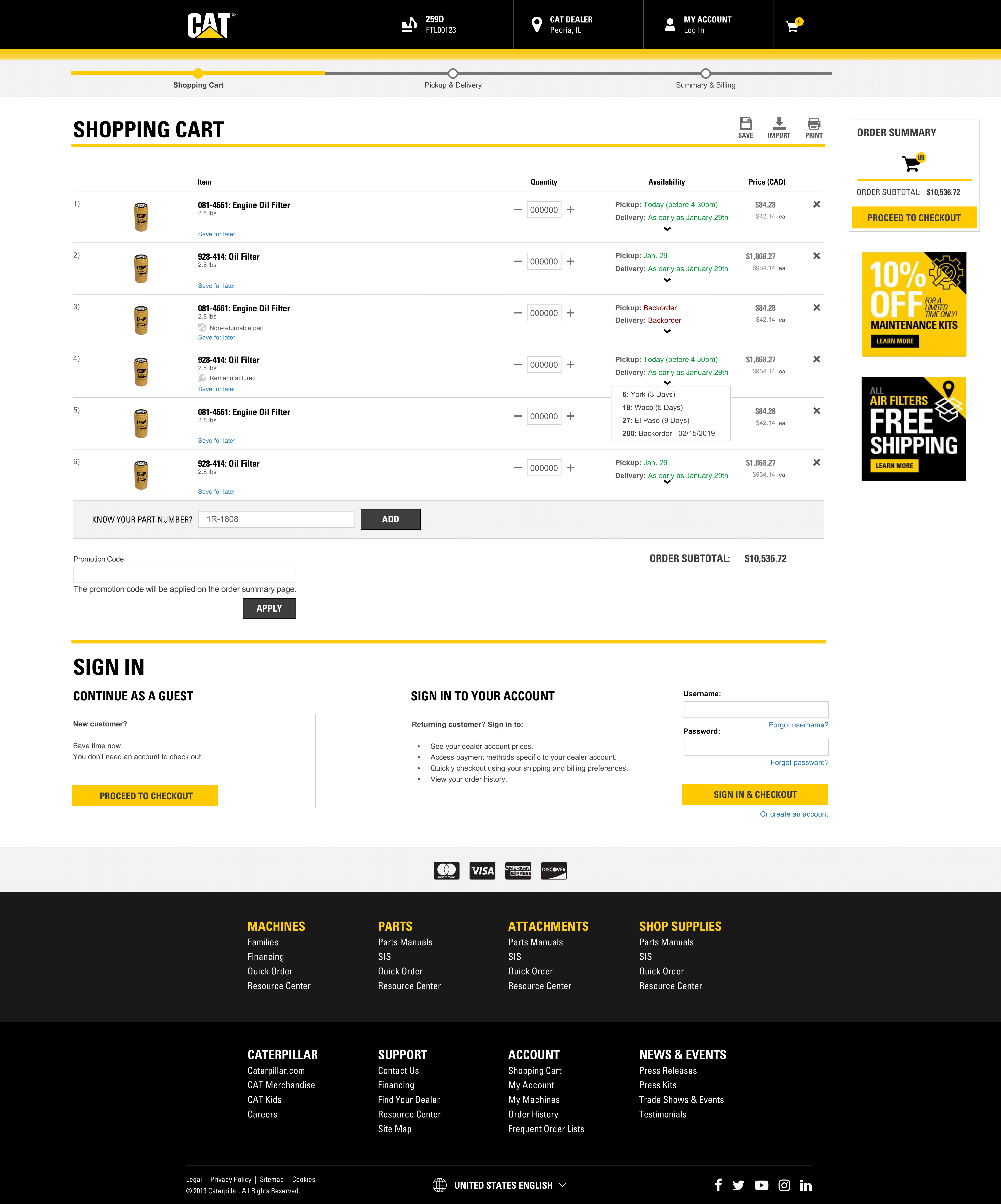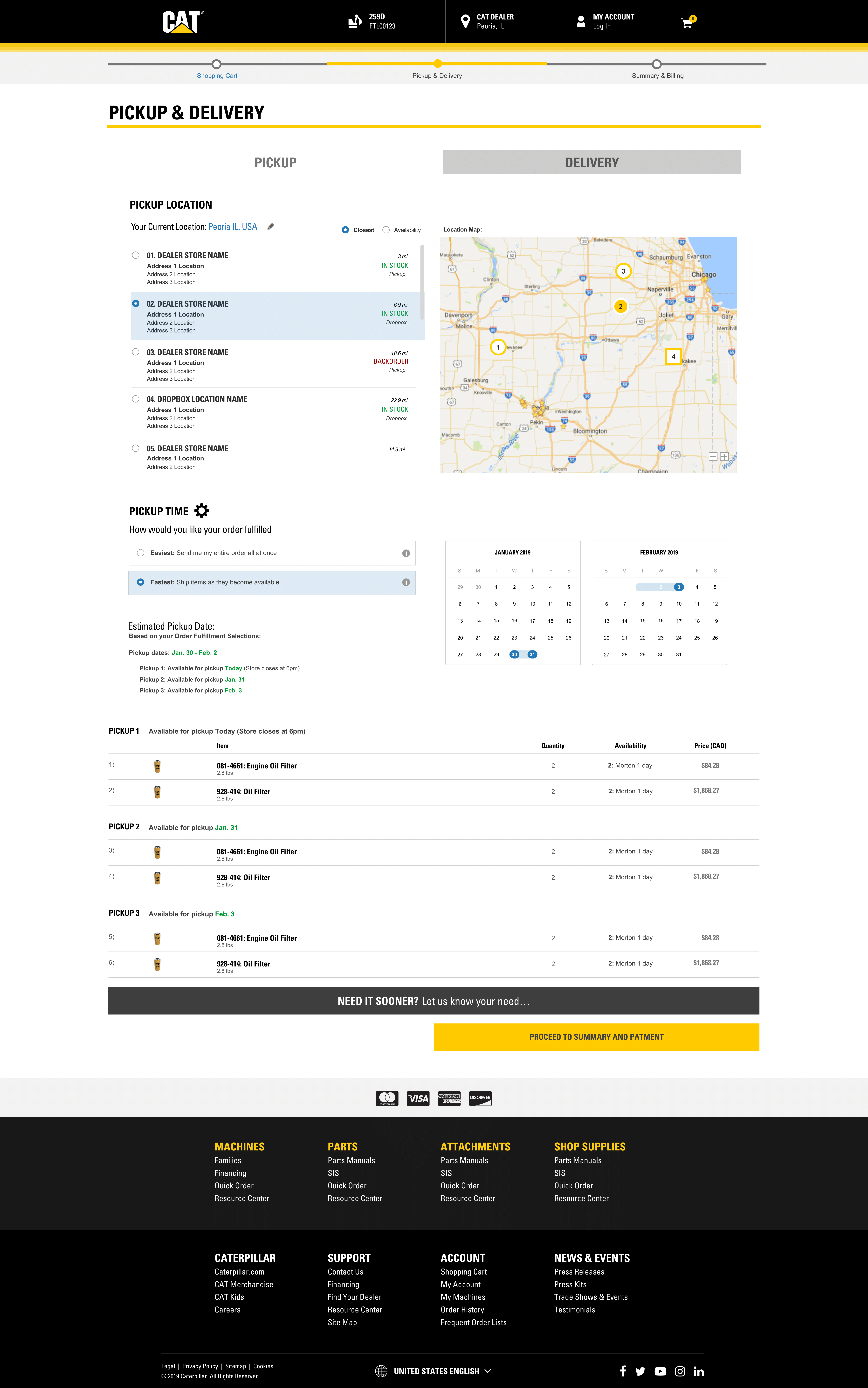 In this role I was employed by Perficient Inc., a digital agency and working as a Sr. UI/UX Design consultant for client Caterpillar. At the time I started I was traveling to the client site which was headquartered in Peoria IL. I’d spend the week Mon - Thurs on site then work remotely on Fri. Initially I spent 3 months at the client site, learning the business, building the a relationship with the client and understanding their needs. I was working in a staff augmentation capacity progressively enhancing their main e-commerce property parts.cat.com which does 2+ billion dollars in sales annually.